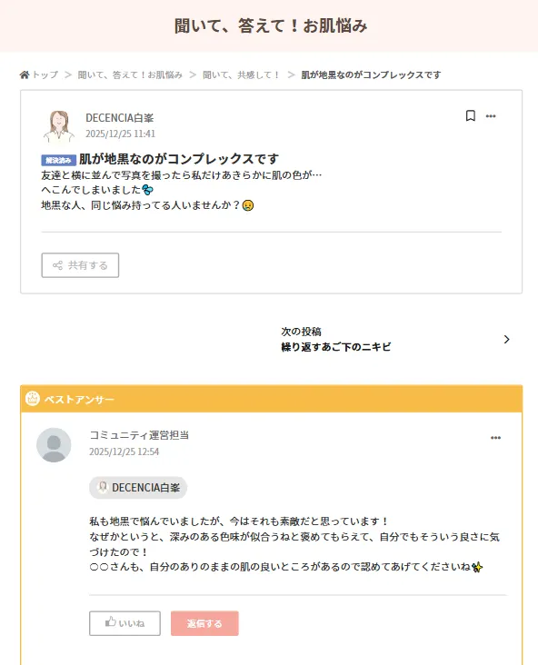 ・聞いて答えて!肌悩み→より共感型で交流重視の場所(コメントが欲しい方や交流したい方向け)