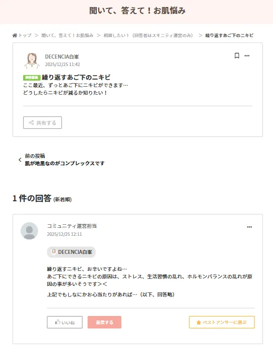 スキニティは、肌悩み総合コミュニティとして機能しているかを大切にしています。