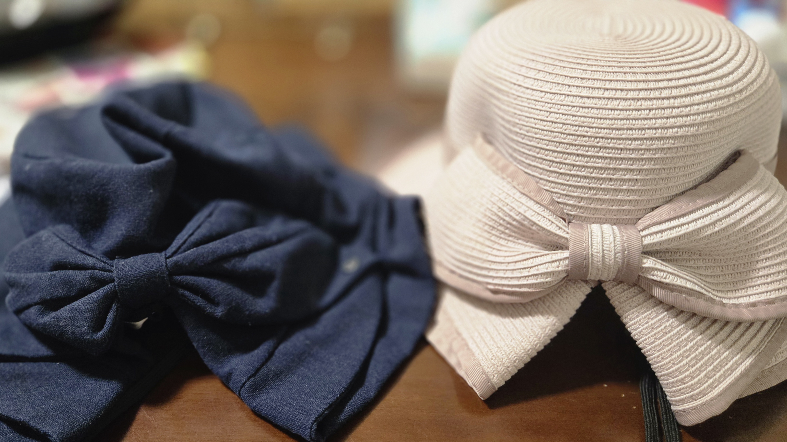 リボンがアクセントになっていて、後ろで髪を結んでもきちんとかぶれるものとても良いですね!