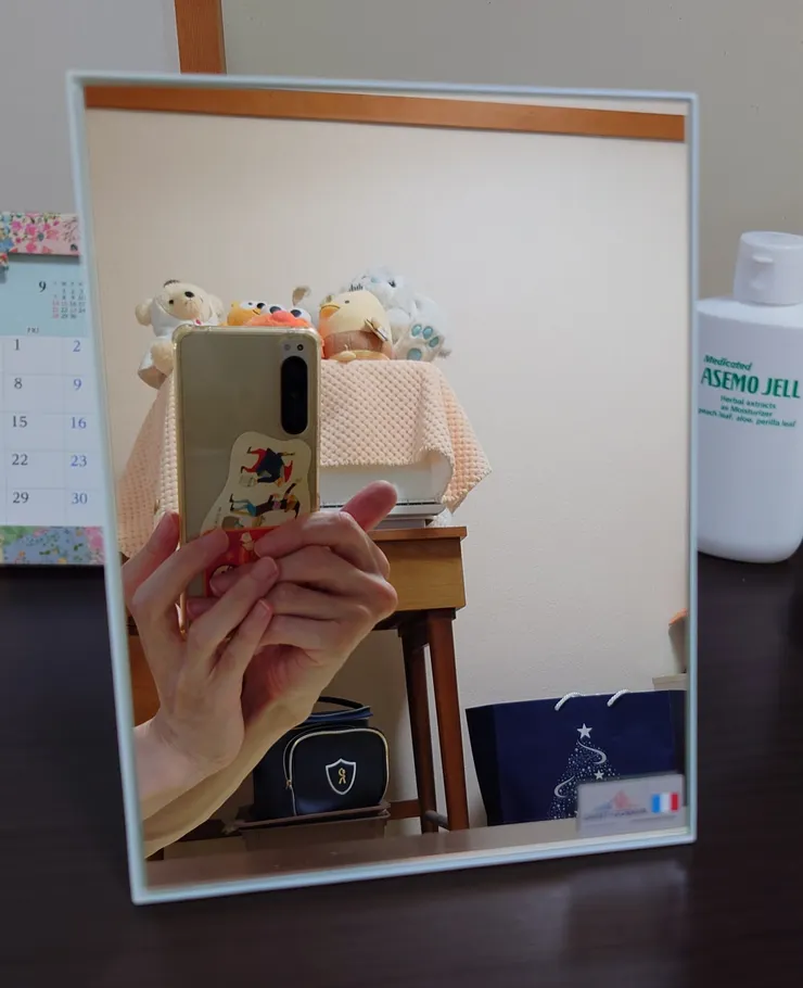 私が愛用している老舗鏡メーカーさんの鏡は、光の乱反射が少なくて、顔が明るく、クリアに、そしてシャープに映るんです😊