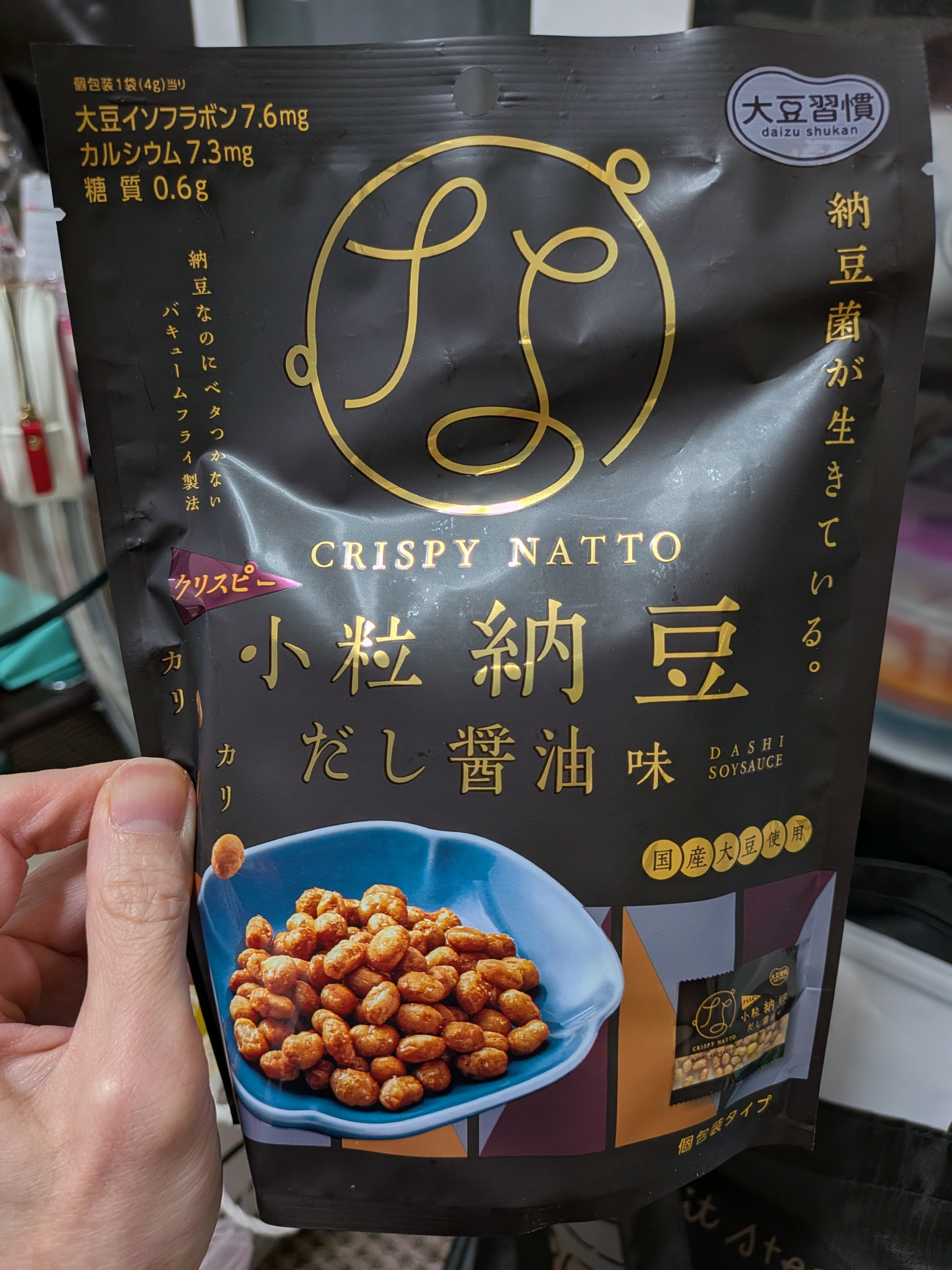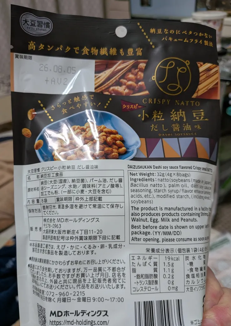 小さなテトラパック型の個包装になってるので、職場に持って行って休憩タイムのお茶請けにしたり、週末はビールのアテにしたり🍻