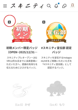 ④装着したいバッジの左上にある「+」マークをタップ