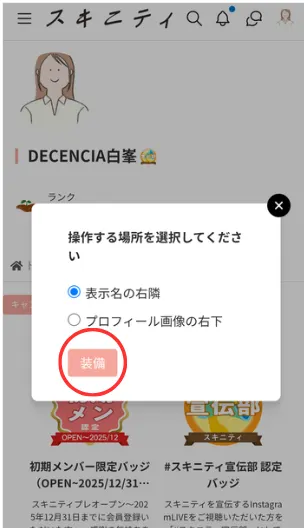 ③「バッジ装備」をタップ